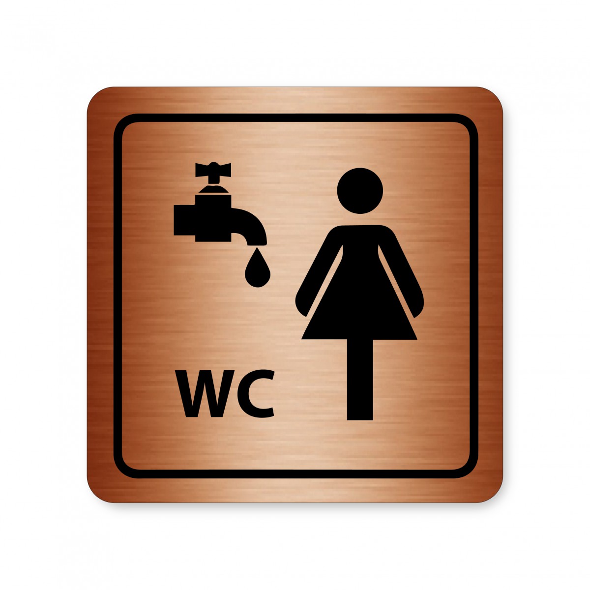 Piktogram WC ženy s umývárnou je zhotoven sublimačním potiskem eloxovaného hliníku. Piktogram o rozměru 80x80mm o síle 0,8 mm.