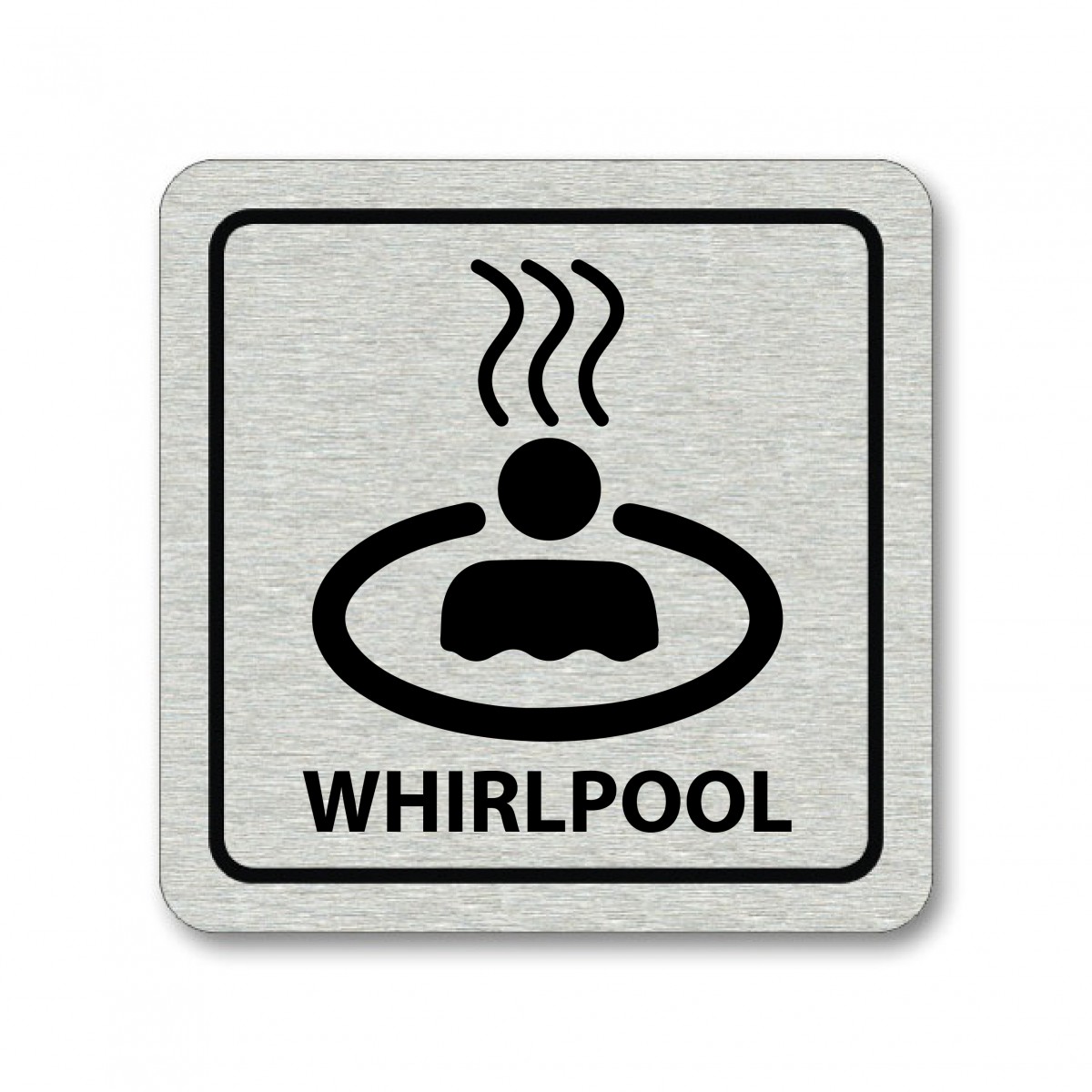 Piktogram Whirlpool je zhotoven sublimačním potiskem eloxovaného hliníku. Piktogram o rozměru 80x80mm o síle 0,8 mm.