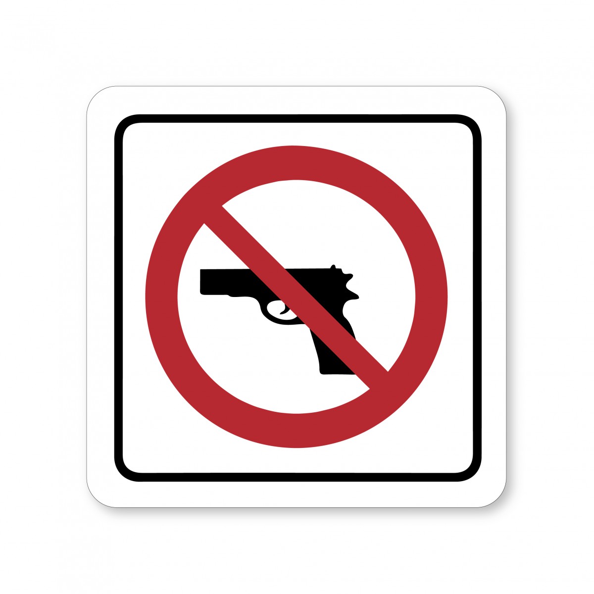 Piktogram Zákaz zbraní je zhotoven sublimačním potiskem eloxovaného hliníku. Piktogram o rozměru 80x80mm o síle 0,56 mm.