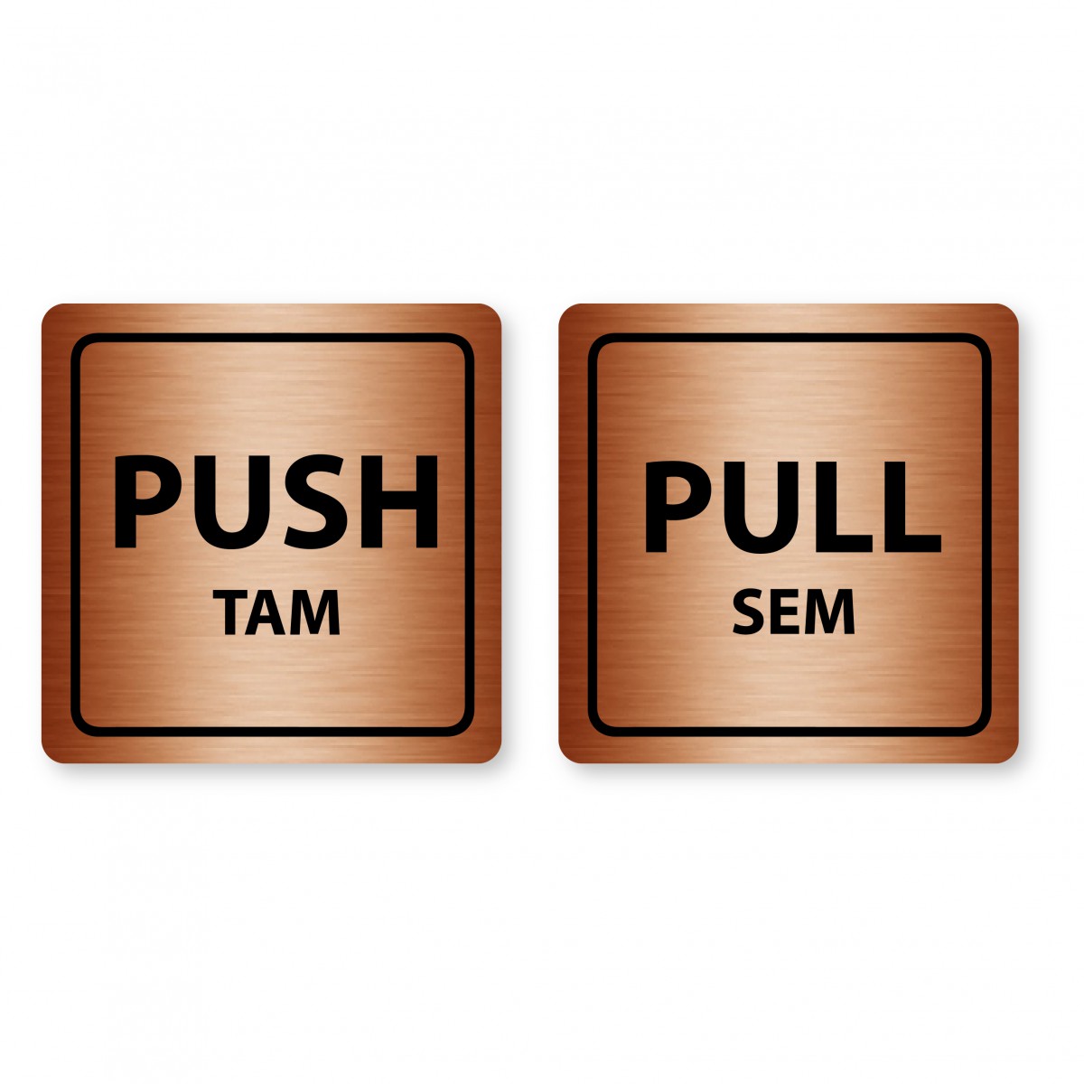 Piktogramy Push/Pull jsou zhotoveny sublimačním potiskem eloxovaného hliníku. Piktogramy o rozměru 80x80 mm o síle 0,56 mm. Jedná se o párové piktogramy(2ks).