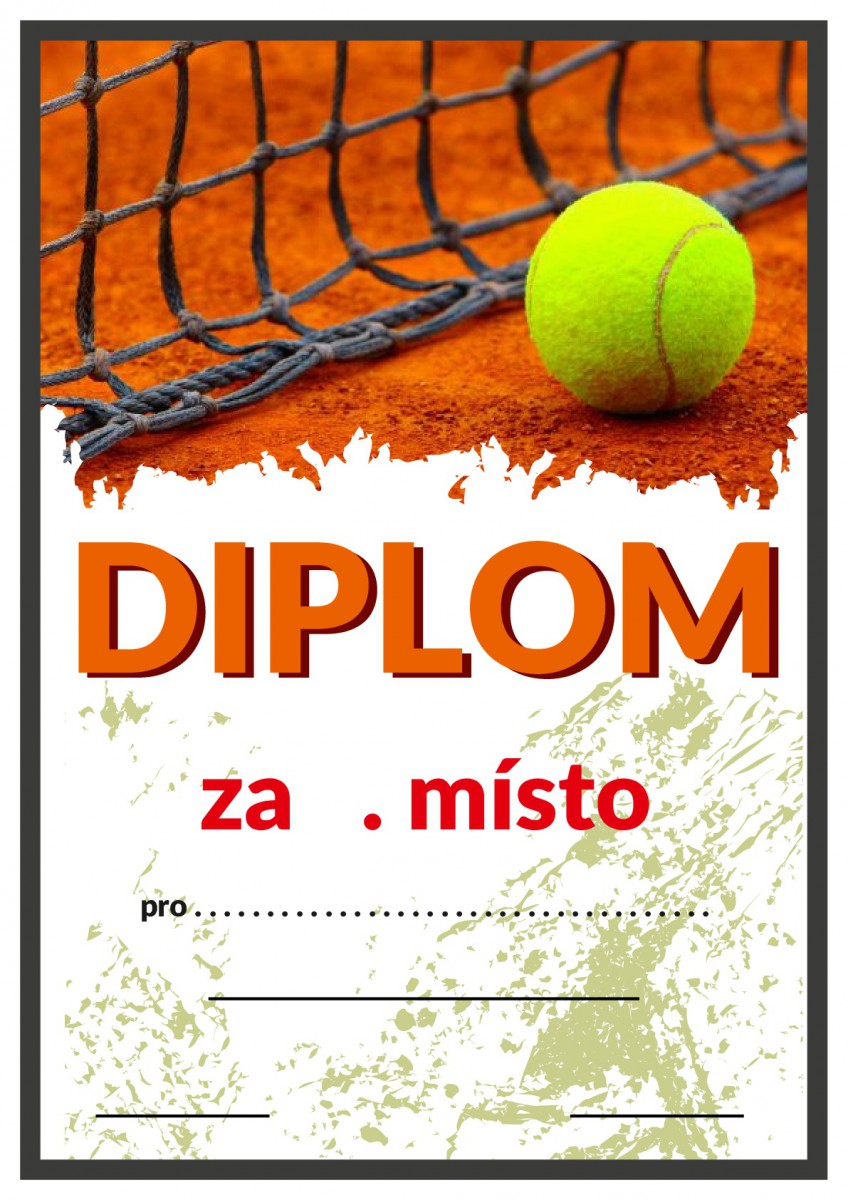 Diplom tenis D101 je tištěný barevným laser tiskem na tvrdý křídový papír 250 g/m2 o velikosti A4 / 210 x 297 mm /. Na diplom lze dopsat ručně údaje nebo zdarma dotisknout Vámi dodaný text.