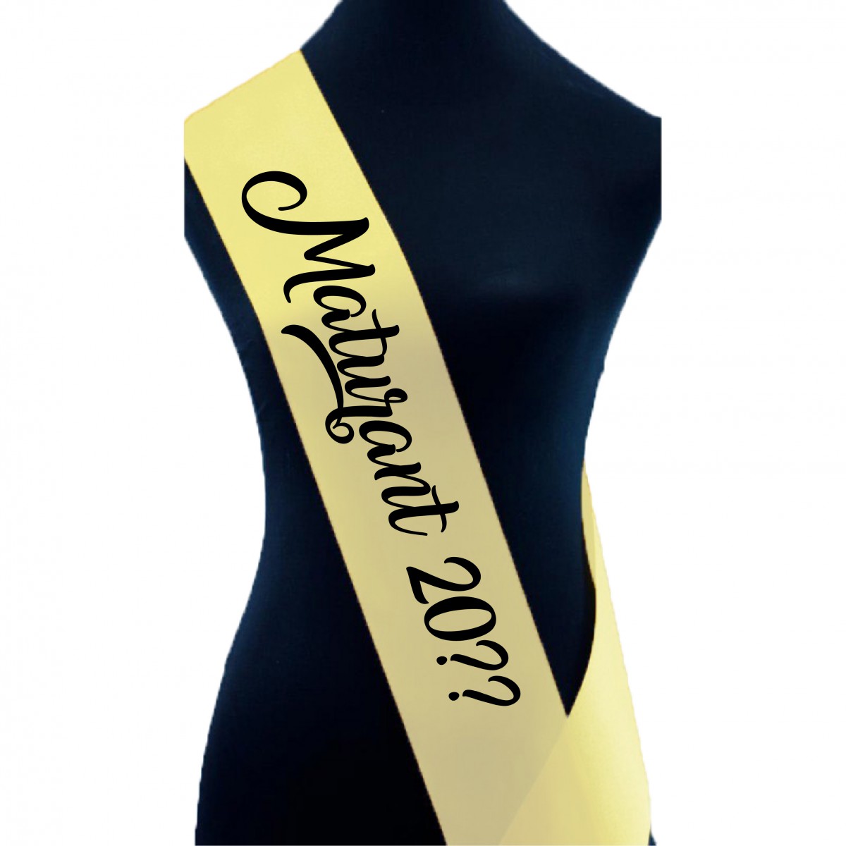 Maturitní šerpy s potiskem na maturitní večírek. Objednejte si u nás luxusní, originální a kvalitní maturitní šerpy pro tento výjimečný den. Jako krásnou památku na tento slavnostní okamžik nabízíme tuto šerpu včetně dotisku dle Vašeho přání. Taftové šerpy v šíři 100 mm a délce cca 2000 mm dodáváme standartně zastřižené entlovacími nůžkami zabraňující třepení šerpy.