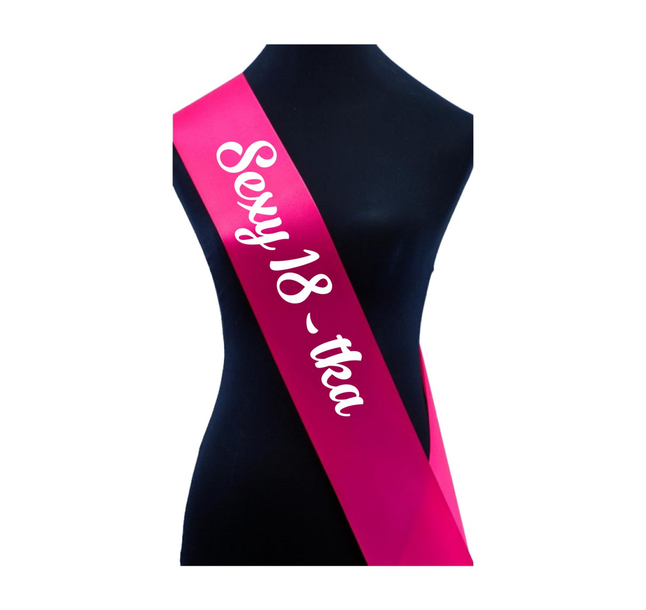 Narozeninovou šerpu s nápisem "Sexy 18-tka" kupují kamarádky, které připravují to nejúžasnější oslavu narozenin plnoletosti. Už se blíží Váš velký den? S touto šerpou každý pozná, kdo je hlavní hvězdou večera na párty. Vaše narozeninová party nebo rozlučka se svobodou bude nezapomenutelná. Taftové šerpy v šíři 100 mm a délce cca 2000 mm dodáváme standartně zastřižené entlovacími nůžkami zabraňující třepení šerpy.
