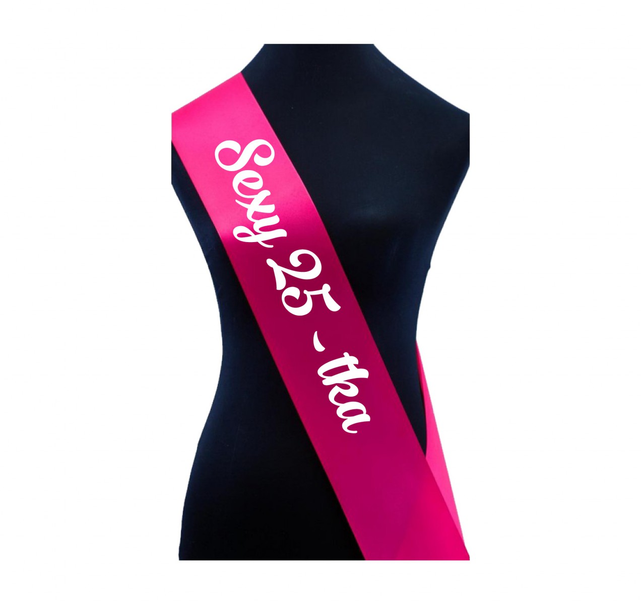 Narozeninovou šerpu s nápisem "Sexy 25-tka" kupují kamarádky, které připravují to nejúžasnější oslavu narozenin plnoletosti. Už se blíží Váš velký den? S touto šerpou každý pozná, kdo je hlavní hvězdou večera na párty. Vaše narozeninová party nebo rozlučka se svobodou bude nezapomenutelná. Taftové šerpy v šíři 100 mm a délce cca 2000 mm dodáváme standartně zastřižené entlovacími nůžkami zabraňující třepení šerpy.