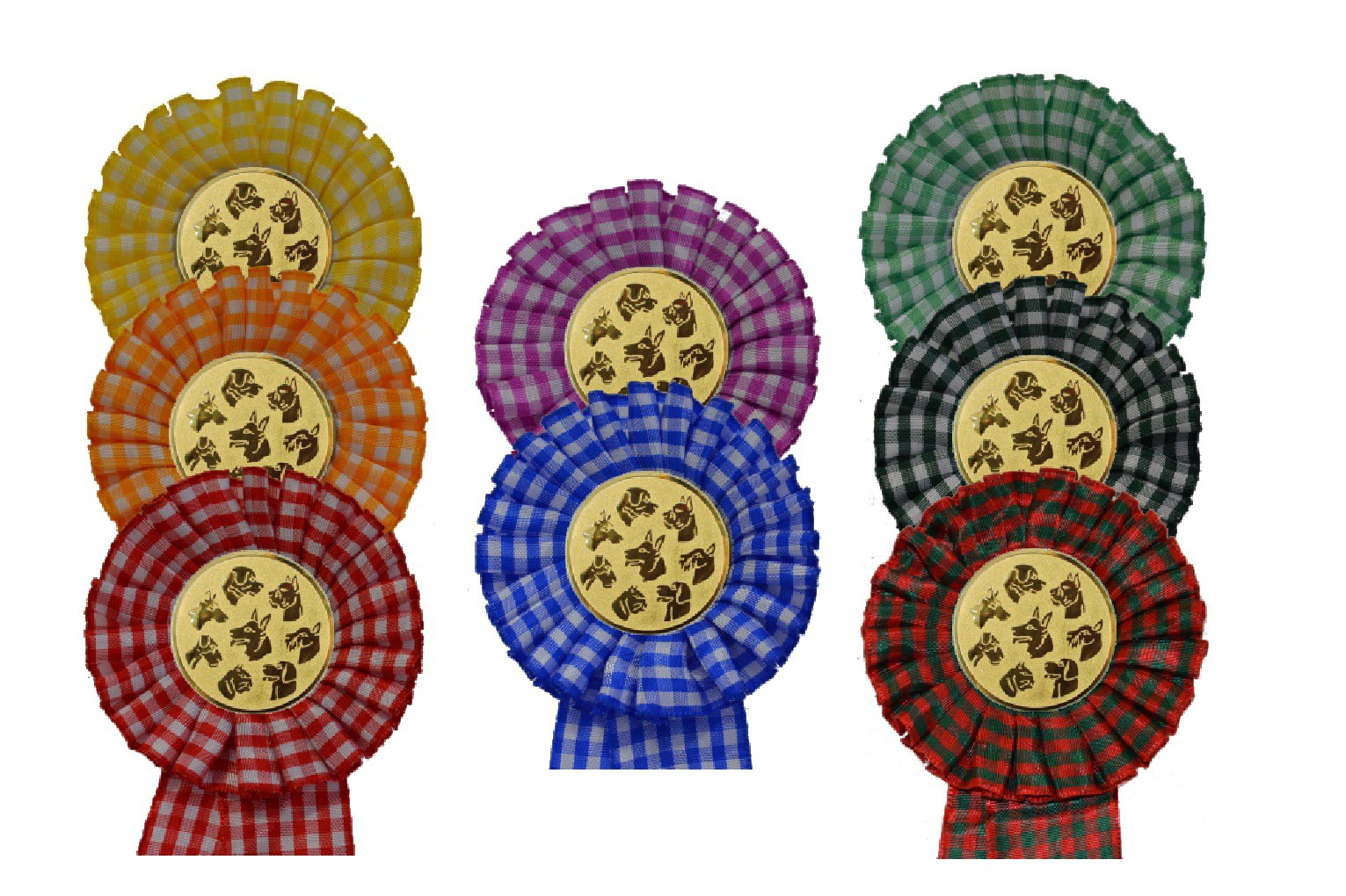 Kokarda jednočetná károvaná o průměru 12 cm s kovovým spínacím špendlíkem vzadu, barevné provedení a výběr chvostů jednočetných kokard naleznete po přidání do košíku a je ZDARMA. Kokardy lze doplnit kruhovým štítkem s vlastním textem nebo logem o maximálním průměru 60 mm na zlaté fólii s černým nebo barevným laserovým potiskem. Na tyto štítky lze umístnit logo dle Vašeho návrhu nebo obrázek s vlastním textem. Cena kokardy je bez emblému nebo štítku.