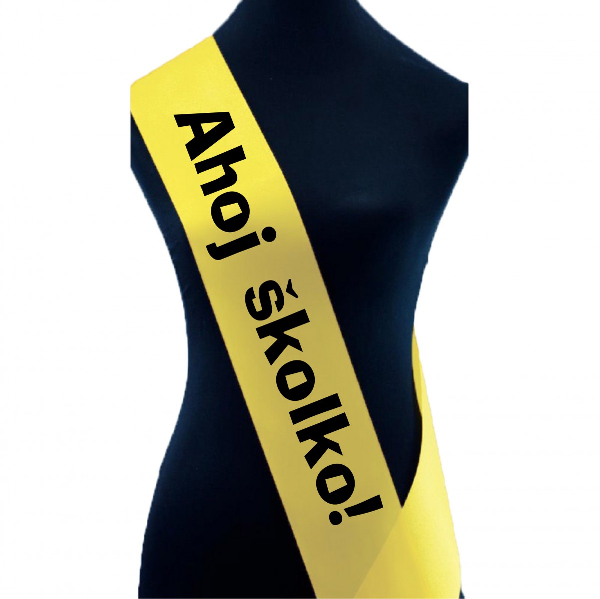 Šerpa Ahoj školko! na rozloučení se školkou je v životě malého dítěte velký krok. Jako krásnou památku na tento slavnostní okamžik nabízíme tuto šerpu včetně potisku dle Vašeho přání. Taftové šerpy v šíři 100 mm a délce cca 1500 mm dodáváme standartně zastřižené entlovacími nůžkami zabraňující třepení šerpy.