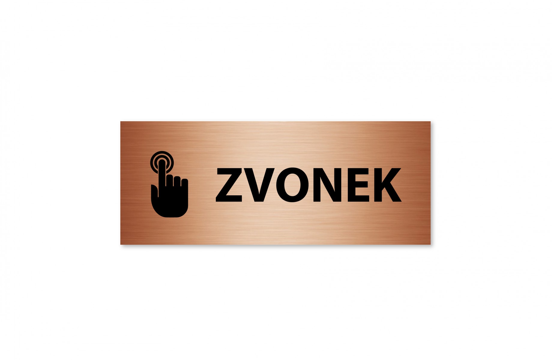 Štítek Zvonek je vyroben z aloxovaného hliníku o síle 0,56 mm barevně potištěn. Rozměr štítku je 100 x 40 mm a síla 0,56 mm. Štítek můžeme dodat včetně oboustranné samolepicí pásky, pomocí které připevníte štítek na jakýkoliv hladký povrch. Jestli budete chtít jmenovku na dveře takto upevnit, vyberete tento požadavek v objednávce.