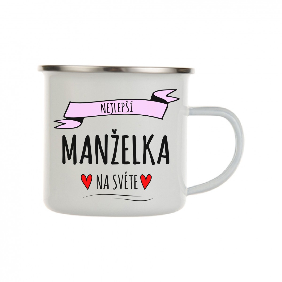Plechový smaltovaný hrnek s nerezevým lemem s vlastním potiskem, fotkou nebo textem.
