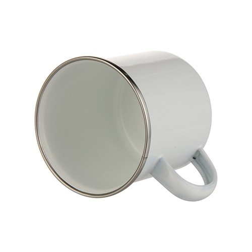 Smaltovaný plechový hrneček s nerezovým lemem o průměru 80 mm a objemu 300 ml potěší každého dobrodruha.