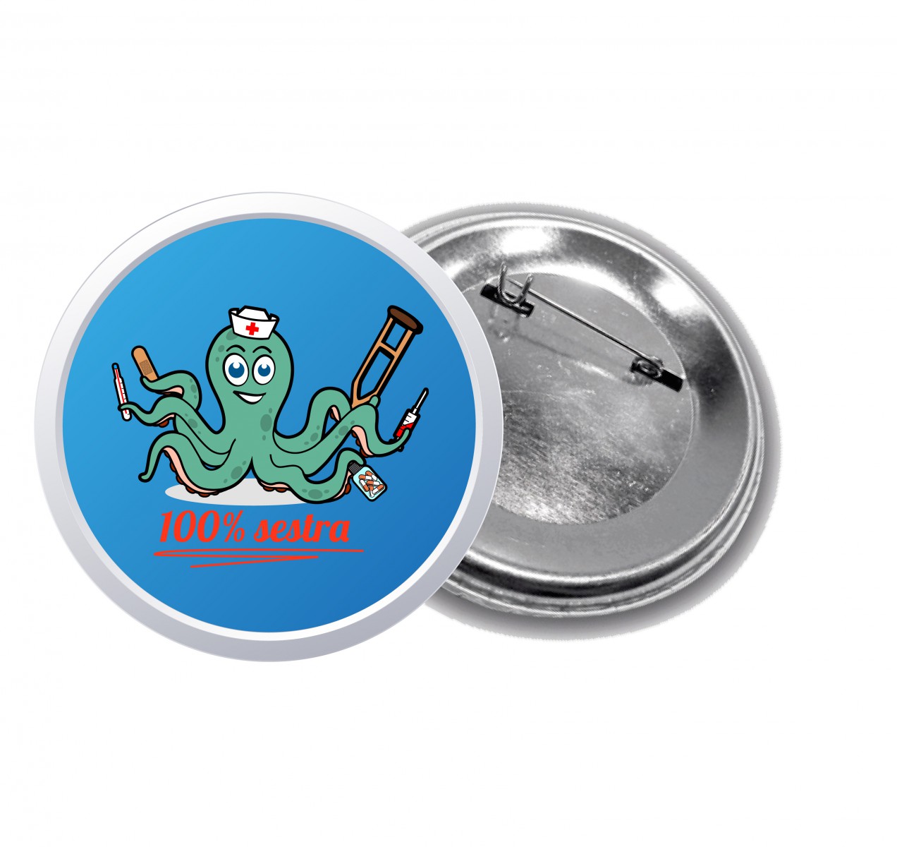Placka pro sestřičky o průměru ⌀ 56 mm. Placky jsou z kovu, opatřeny spínacím špendlíkem, tisková strana je krytá průhlednou lesklou fólii pro ochranu a efektnější vzhled motivu.