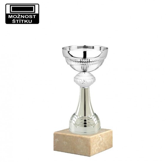 Pohár Si019.3 bez víka, barva stříbrná, výška bez víka 20 cm, velikost kalichu 80 mm, barva nohy stříbrná. Maximální velikost potisku štítku na podstavec je 60 x 25 mm.